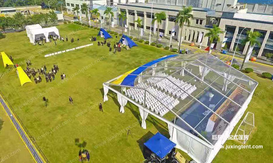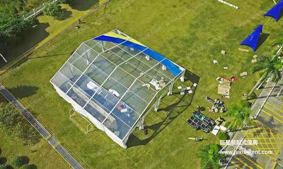 因篷房對搭建場所要求不高,可以搭建在草坪上、水泥地上、水面上等等,活動(dòng)舉辦者可以更靈活地選擇自己想要搭建的場所。為了更為人性化,透明篷房還有各種形狀和靈活的結(jié)構(gòu)組合,而且搭建簡易迅速、施工周期短,非常適合用于戶外短期或者長期的活動(dòng)。
