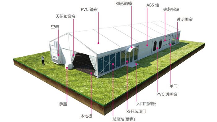 產(chǎn)品優(yōu)勢.外觀簡潔大方. 內(nèi)無支柱,百分百利用空間.可選配套設(shè)施,可加照明、排水、防撞、地臺、空調(diào)、發(fā)光燈箱、墻體、門等系統(tǒng).鋁合金輕便,安裝拆卸方便快捷.廣泛應(yīng)用于展會、售樓處、倉儲、景區(qū)、酒店、夜市等。